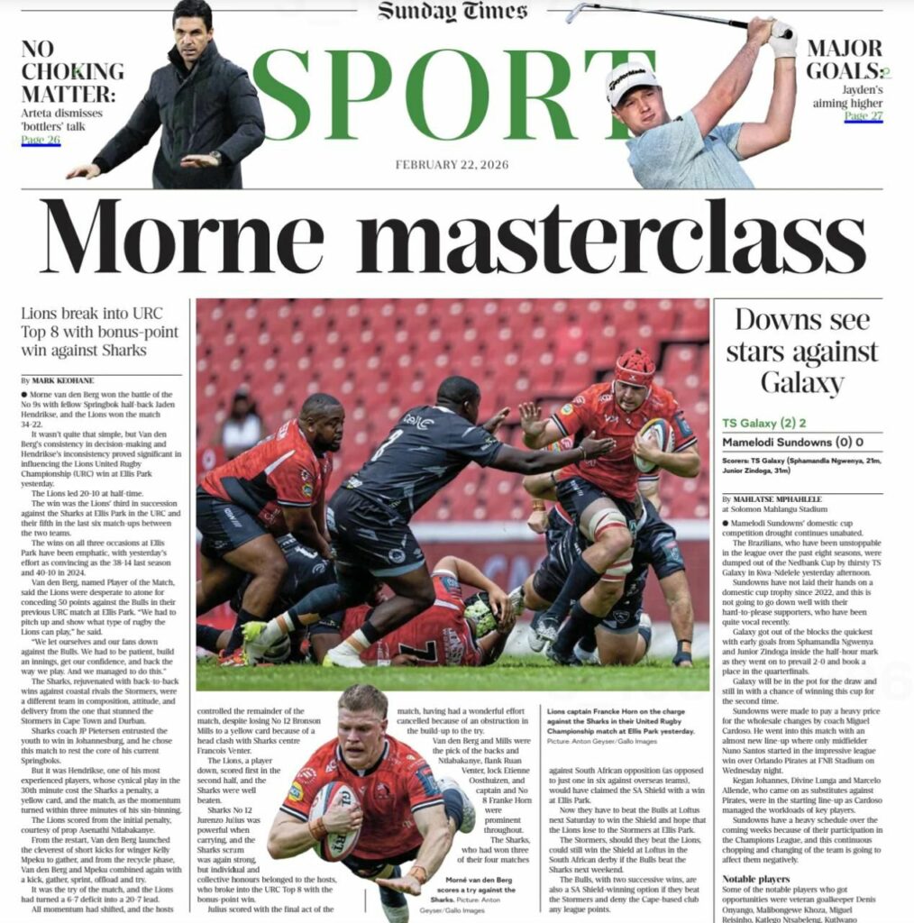 The win moves the Lions into seventh place in the URC and it also kept alive the SA Shield. Had the Sharks won, they would have claimed the Shield, given they already had three bonus-point wins in four matches against their South African colleagues.