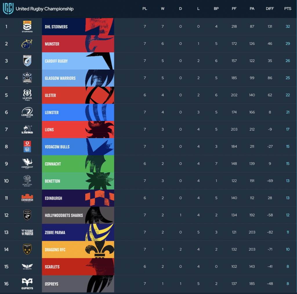 - Sharks (SA) – 5 league points, minus 32 points differential