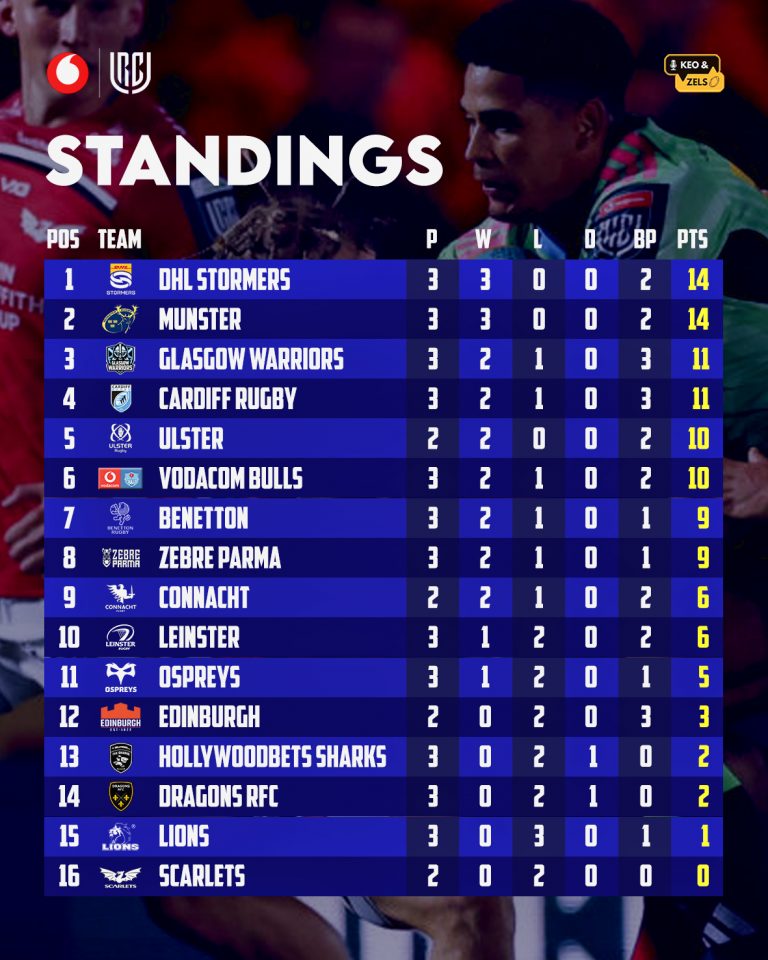 The other undefeated team are Ulster Rugby, who recorded an eye-catching 28-7 bonus point victory over the Vodacom Bulls, who had been top of the table after Round 2.