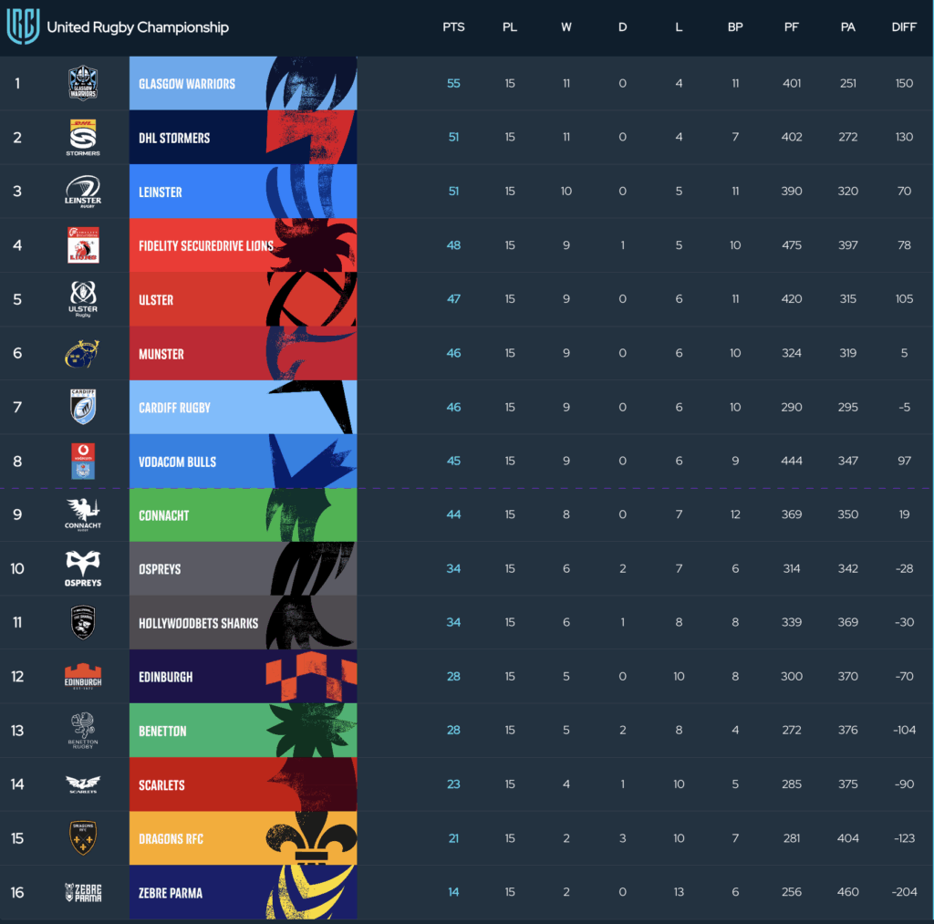 The Lions, in fourth place with 48 points, lead ninth place Connacht, by four league points. It is that bunched outside of the top three, with Glasgow (55 points), leading the Stormers and Leinster, who both have 51 points.