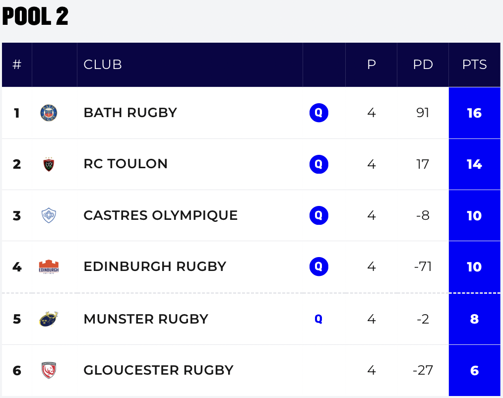 South African coach Johann van Graan’s Bath picked up a crucial bonus point in a 43-20 away win against Castres Olympique, while Glasgow Warriors claimed a famous 33-21 away victory against ASM Clermont Auvergne.