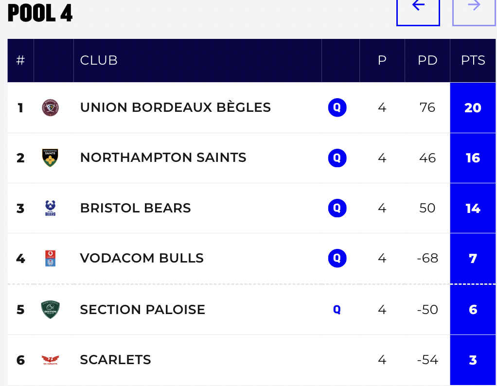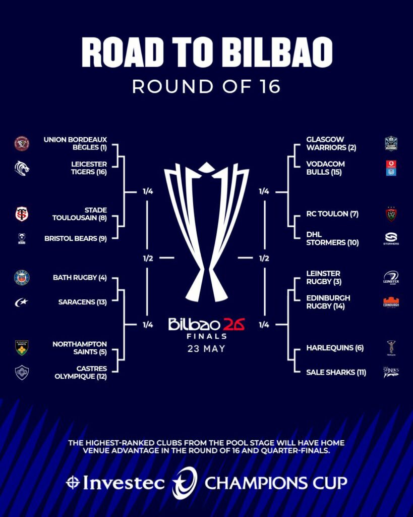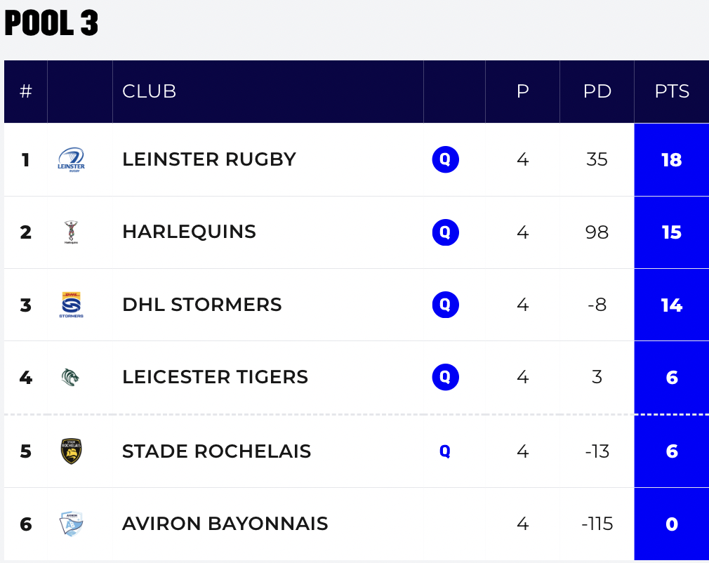 If La Rochelle wins against Harlequins on Sunday, then the Stormers will finish second and host a last 16. If Harlequins win, then the Stormers will be on the road, as Leinster and Harlequins would take the top two places.